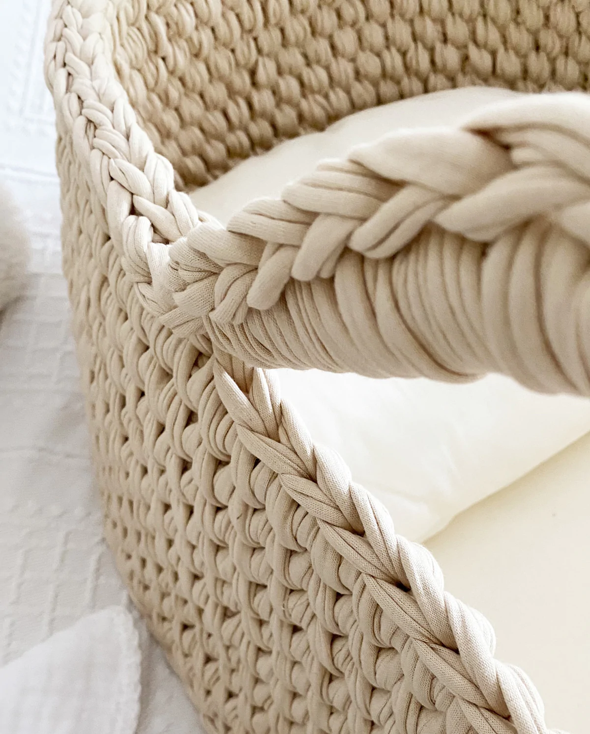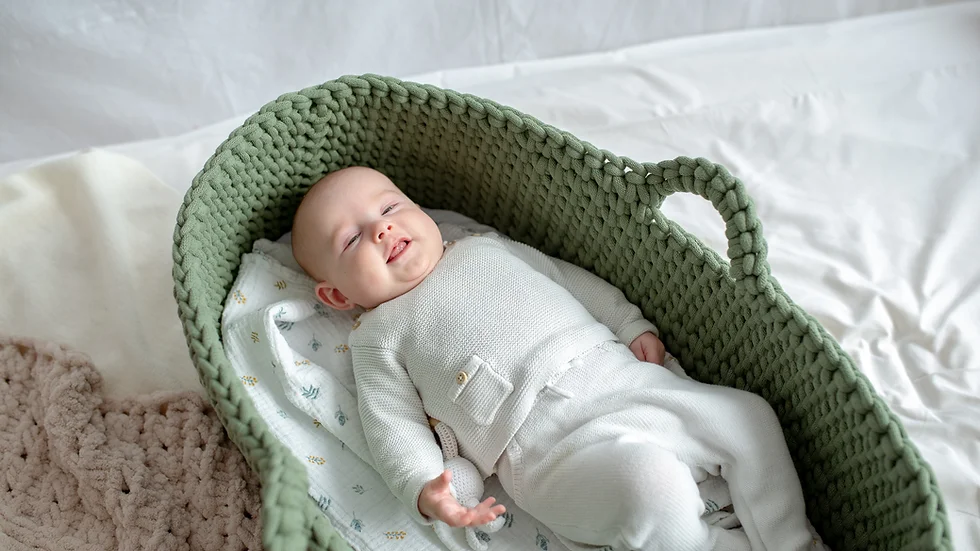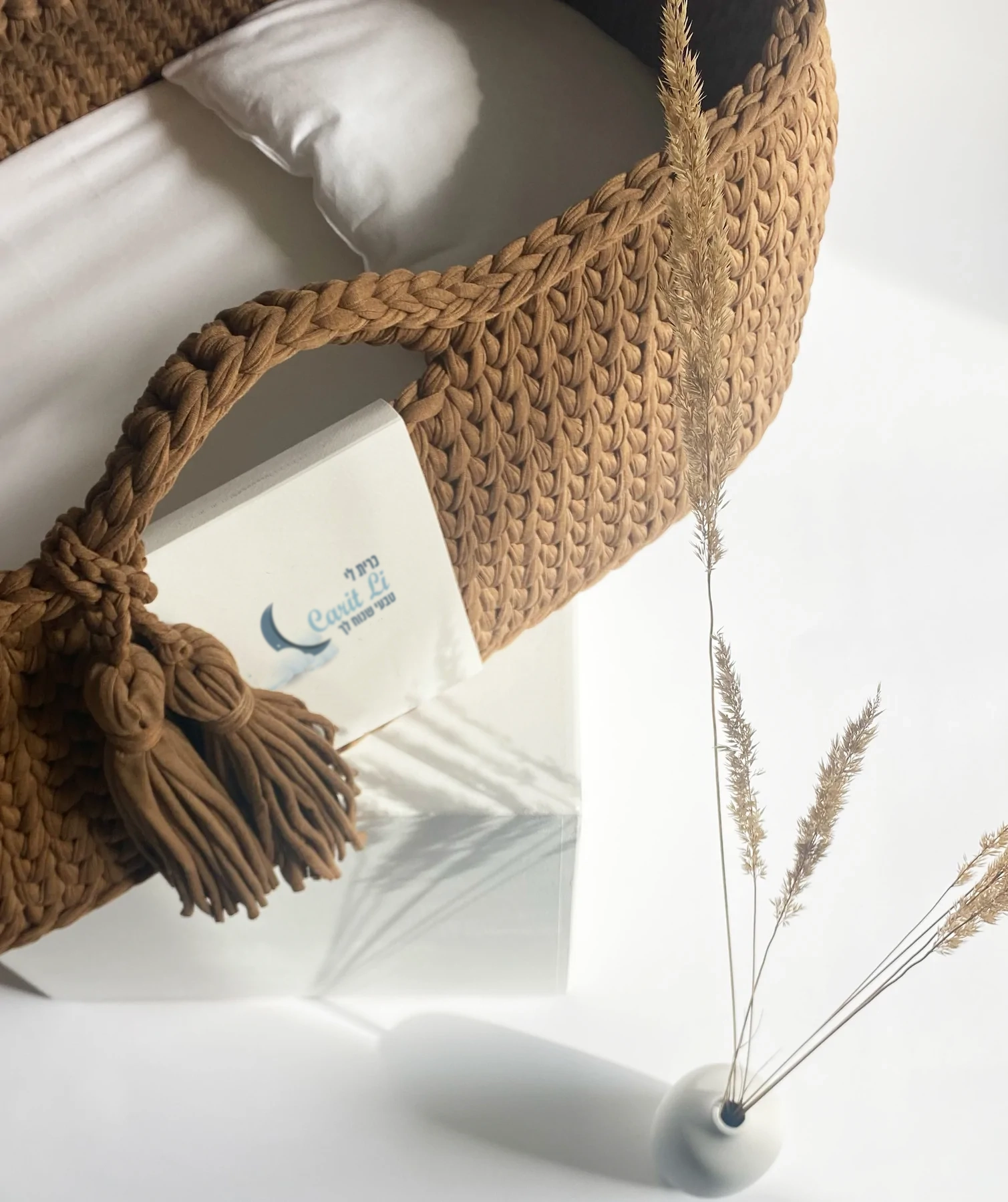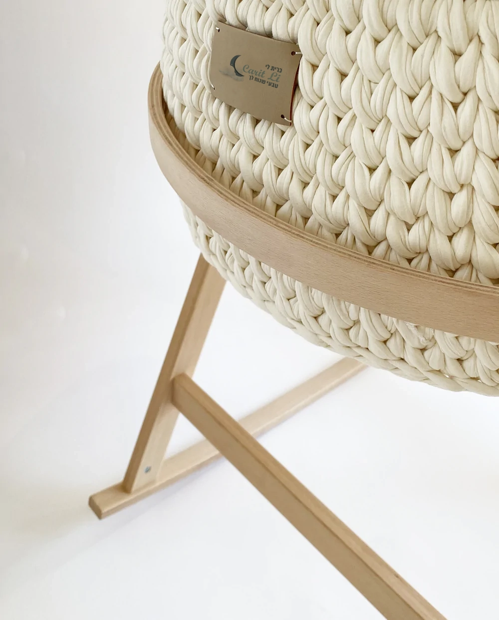 גוף העריסה סרוג ידנית ע”י התופרות שלנו מ100% כותנה.
